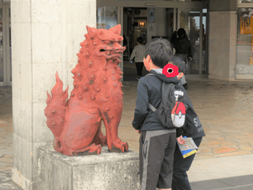 美ら海水族館のシーサーともパシャリ。