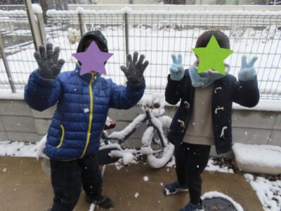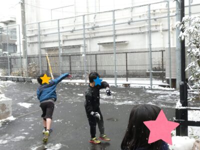 先週末には都内でも雪が降りました。雪が積もってることに子どもたちは大喜び!