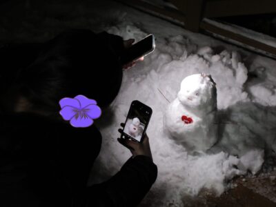 「手が冷たい、寒い!」と何度も言いながらも諦めずに可愛いらしい雪だるまを完成させていました!せっかく作ったので溶けないといいんだけどな~。