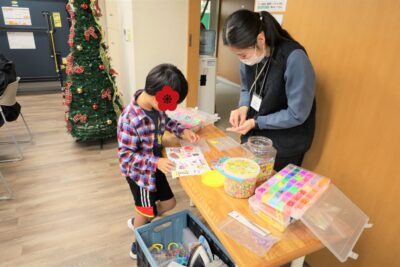 オーナメント作りが難しかった子はアイロンビーズ作りをしました。