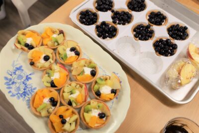 盛り付けは施設を退所したパティシエ経験のある子が中心となってやってくれました。見た目も可愛らしく、お見事!