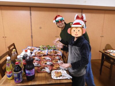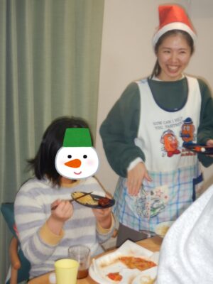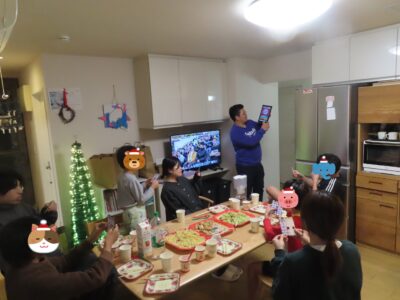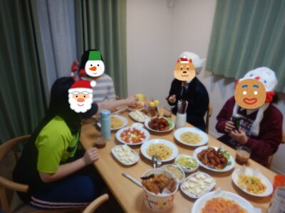 ポテトやヤンニョムチキン、はちみつ掛けチーズのクラッカーなど子どもたちが希望したメニューが盛りだくさん!クリスマスソングをかけたり、みんなでジングルベルを歌ってからケーキを食べるなど賑やかな時間を過ごしました。
